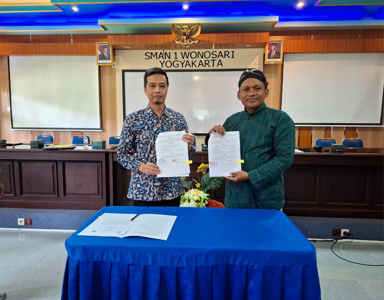 Kegiatan diawali dengan sambutan dari sekolah oleh Bapak Joko Priyatno, S.Pd. mewakili Kepala Sekolah yang sedang bertugas di luar kota. Sambutan dari Balai Bahasa Provisi DIY diwakili oleh Bapak Mulyanto, M.Hum. Dalam sambutan tersebut Bapak Mulyanto, M.Hum. memaparkan bahwa Balai Bahasa Provinsi DIY akan menjalin kerja sama dengan SMAN 1 Wonosari terkait sinergisitas pengembangan, pembinaan, dan pelindungan bahasa dan sastra. Sebagai kelengkapan administrasi, dalam kegiatan ini dilakukan penandatangan secara simbolis surat pelaksanaan kerja sama antara Balai Bahasa DIY dan SMAN 1 Wonosari tentang Sinergisitas Pengembangan, Pembinaan, dan Pelindungan Bahasa dan Sastra Nomor 2023/I5.6/AK.01.07/2025 dan B/400.3.8/1380/SMD.1. Sesuai surat tersebut, ruang lingkup program kerja sama ini meliputi (1) pelaksanaan Sosialisasi Bahasa Hukum; (2) pendampingan Penggunaan Bahasa pada Surat dan Lanskap/Ruang Publik; (3) pelaksanaan program Uji Kemahiran Berbahasa Indonesia; (4) pelaksanaan program Kamus Masuk Sekolah; (5) pelindungan bahasa daerah; (6) pelaksanaan kegiatan literasi; dan (7) pelatihan Bahasa Jawa. Pelaksanaan kerja sama ini berlangsung dalam jangka waktu 3 (tiga) tahun.
